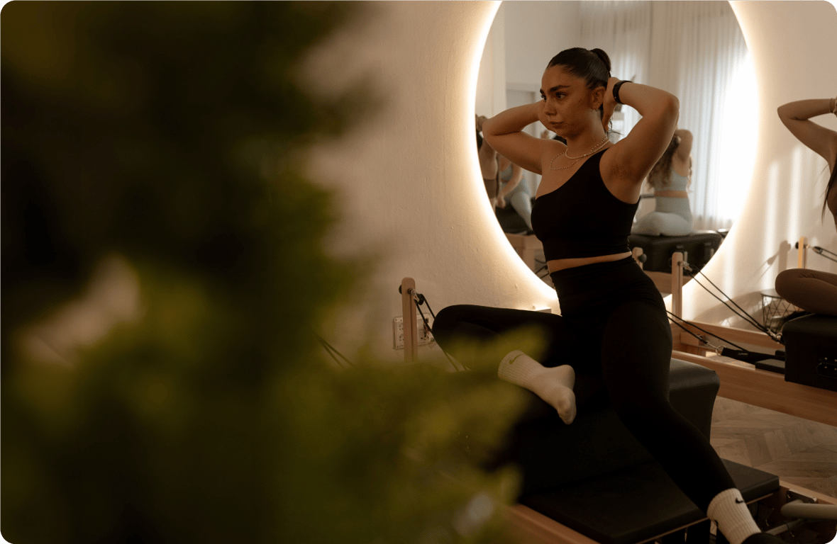 אימון הפילאטיס שלנו מתבצע על מיטת הרפורמר.
